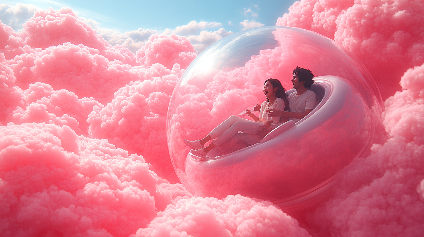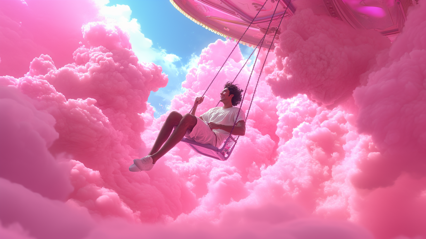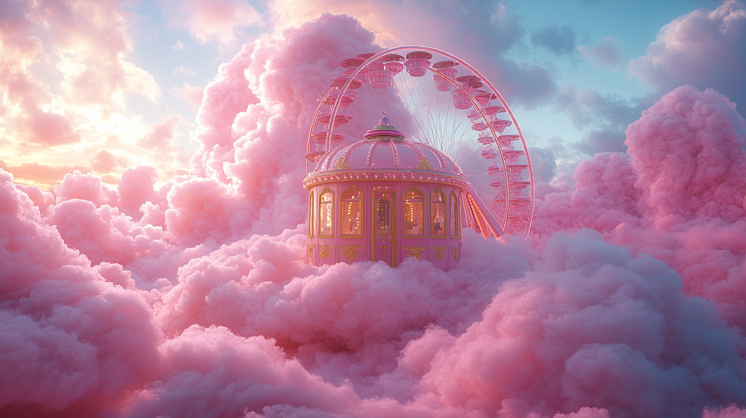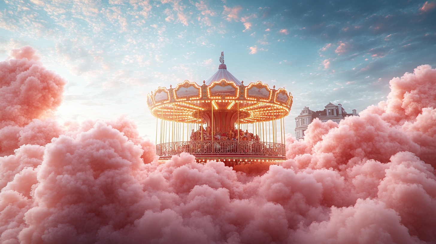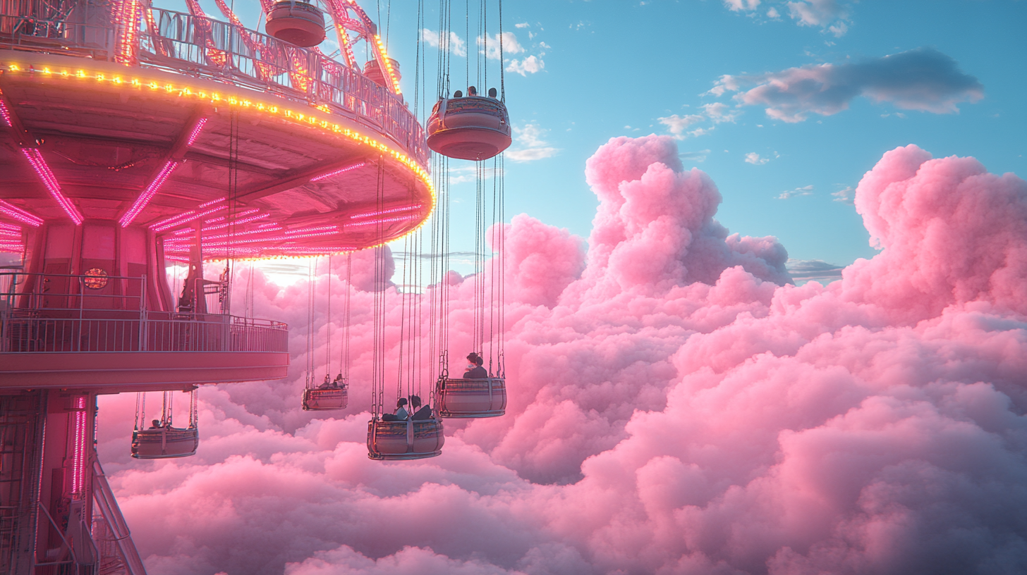 A dreamlike visual world built entirely in the brand’s color palette, transforming clouds into a playful, floating landscape, part carnival, part imagined space above reality.