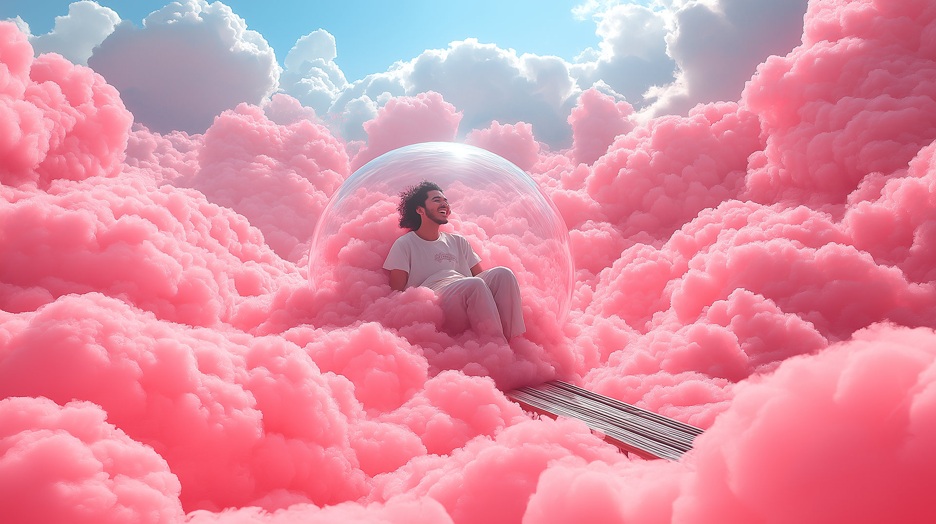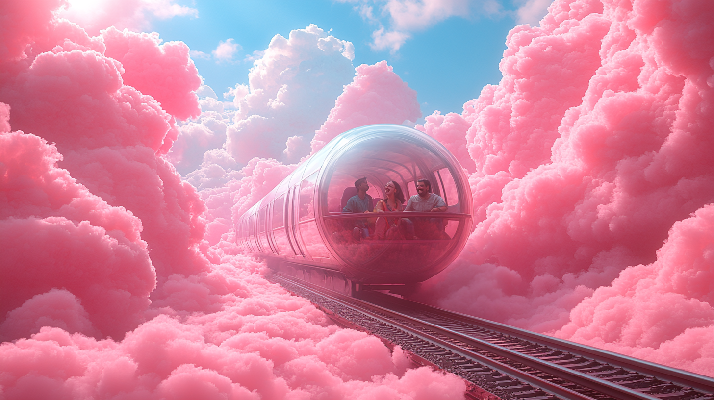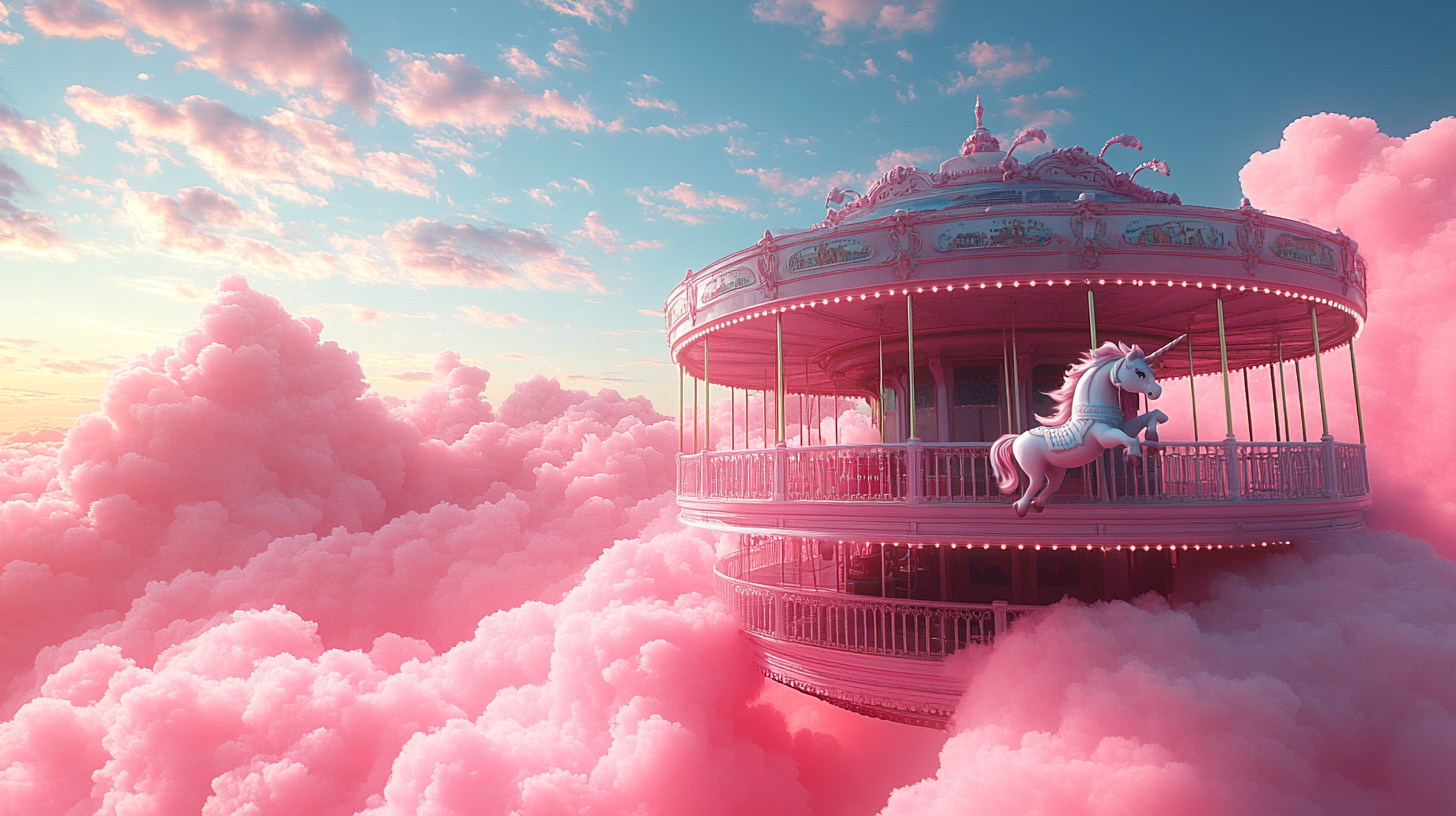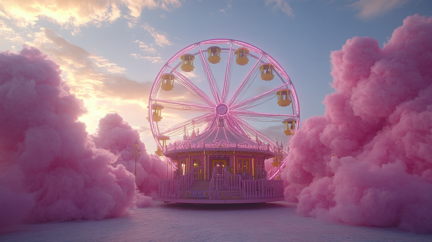 A dreamlike visual world built entirely in the brand’s color palette, transforming clouds into a playful, floating landscape, part carnival, part imagined space above reality.