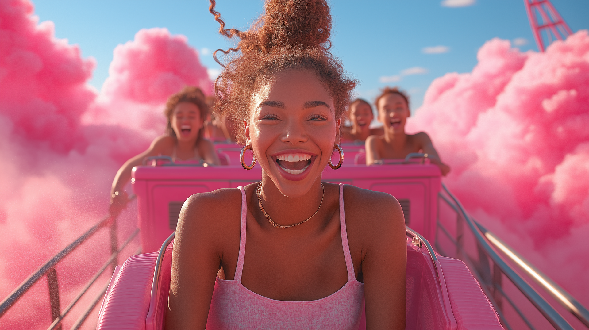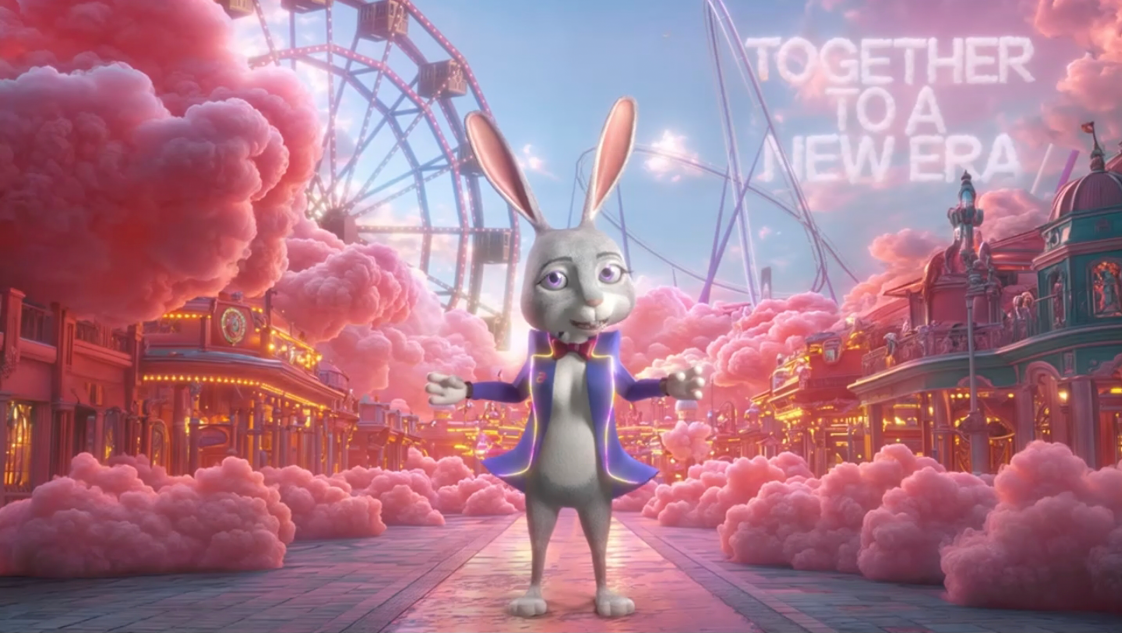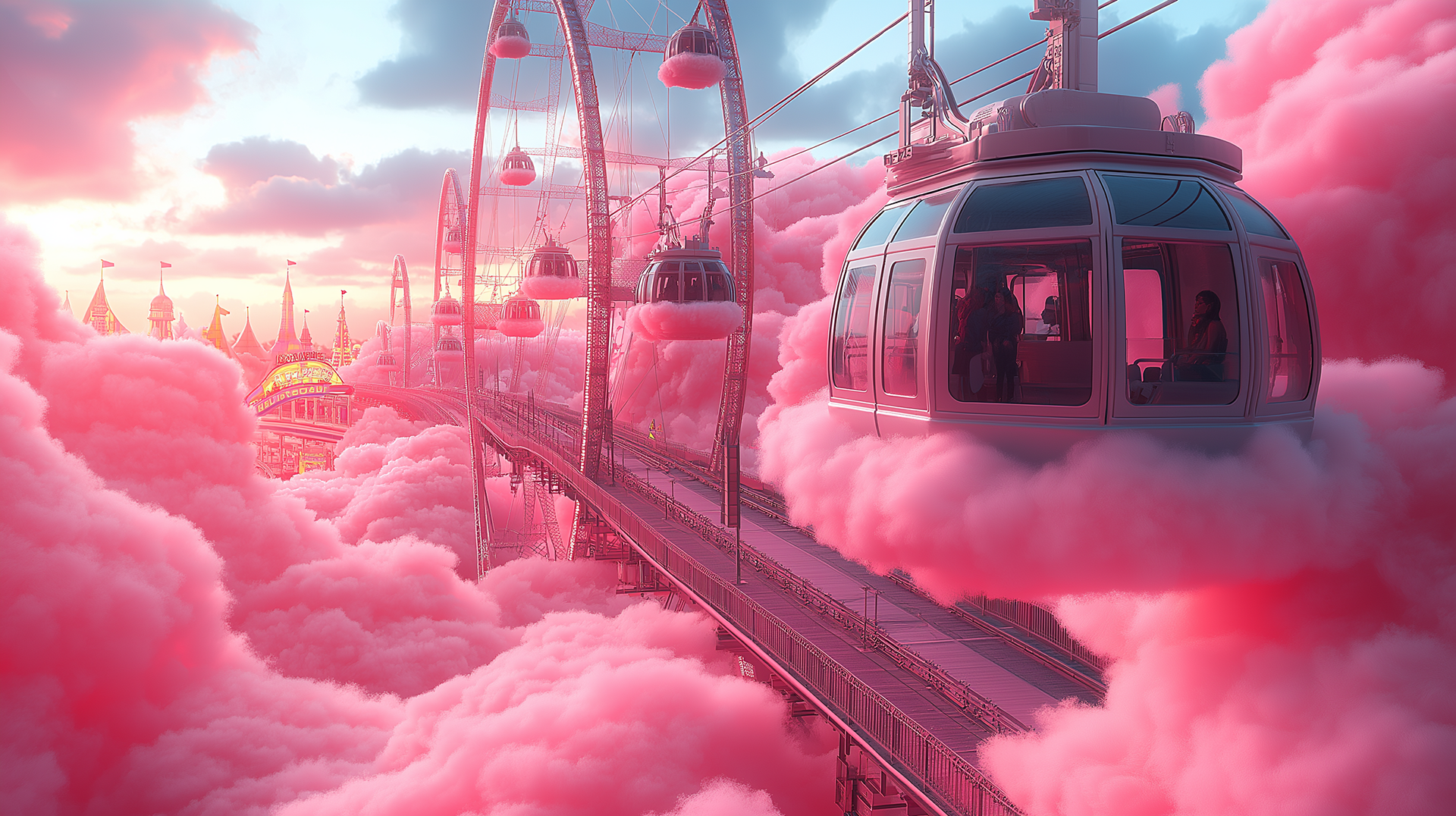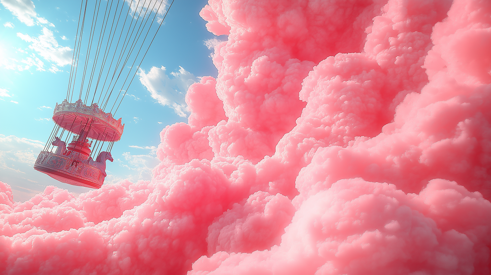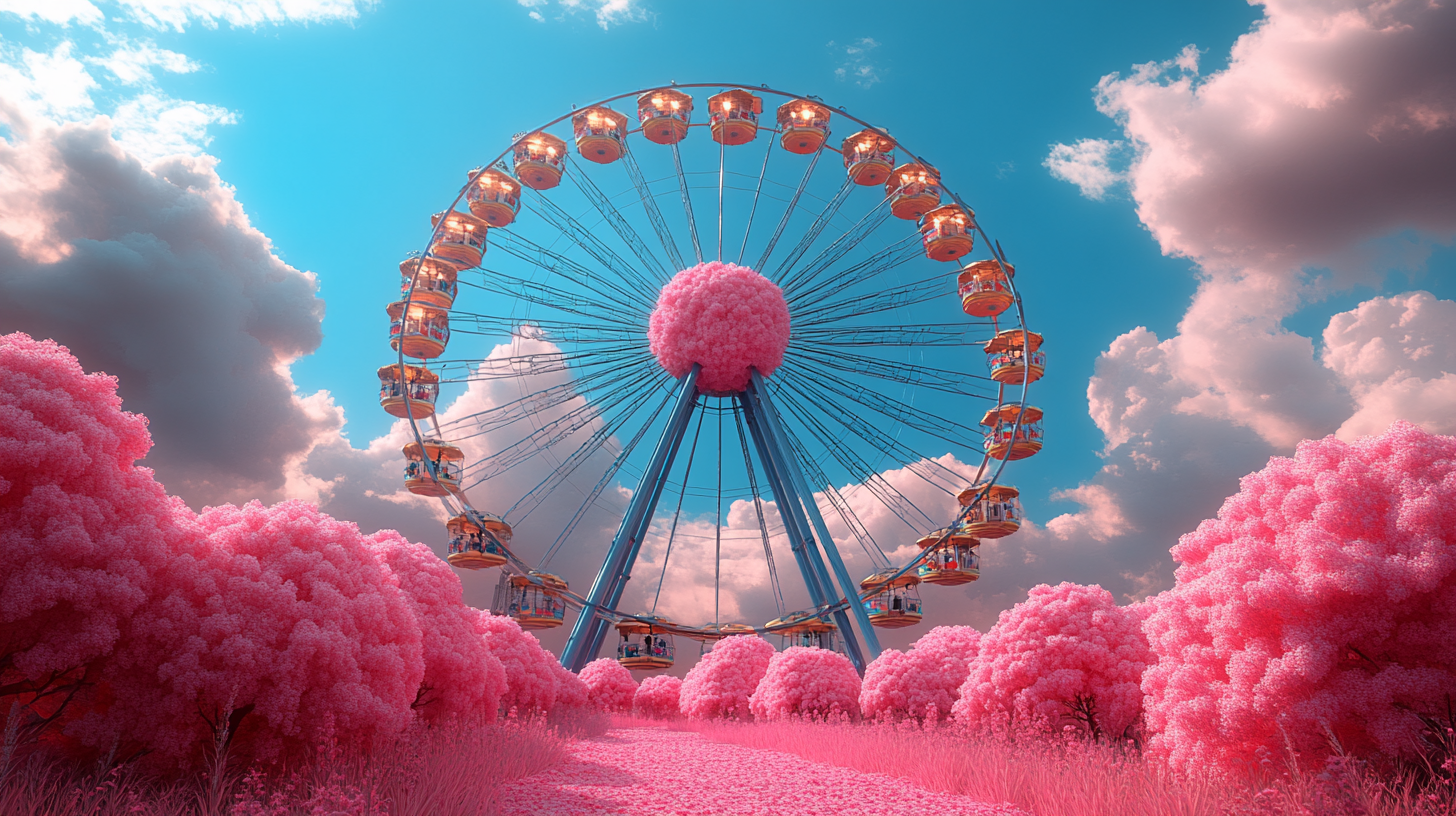 A dreamlike visual world built entirely in the brand’s color palette, transforming clouds into a playful, floating landscape, part carnival, part imagined space above reality.